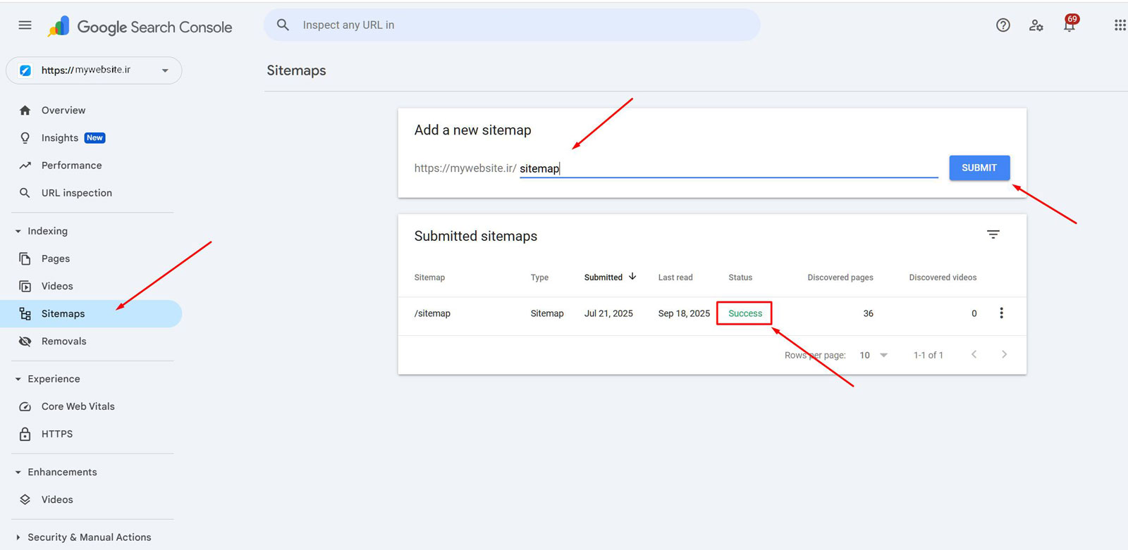 و اما در ادامه آموزش قدم به قدم نحوه معرفی سایت مپ ماجوریس به سرچ کنسول گوگل را آموزش داده ایم: